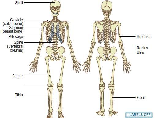 Our skeleton is made of more than 200 bones. Calcium and other minerals make the bone strong but slightly flexible. Bone is a living tissue with a blood supply. It is constantly being dissolved and laid down, and it can repair itself if a bone is broken. Exercise and a balanced diet are important for a healthy skeleton.