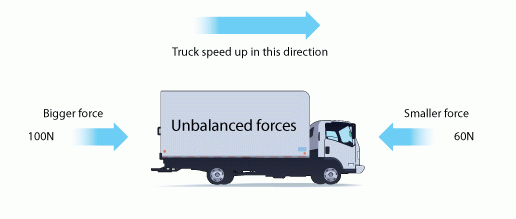 When two forces acting on an object are not equal in size, we say that they are unbalanced forces.